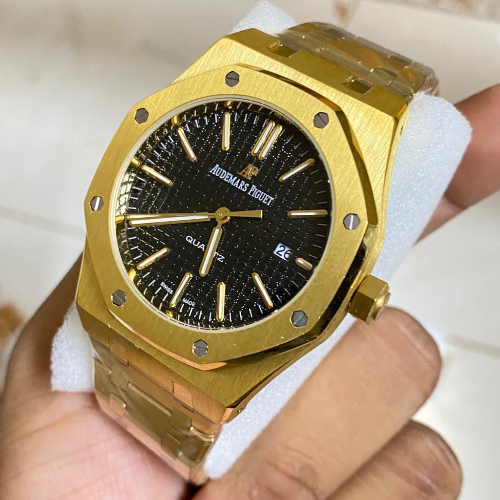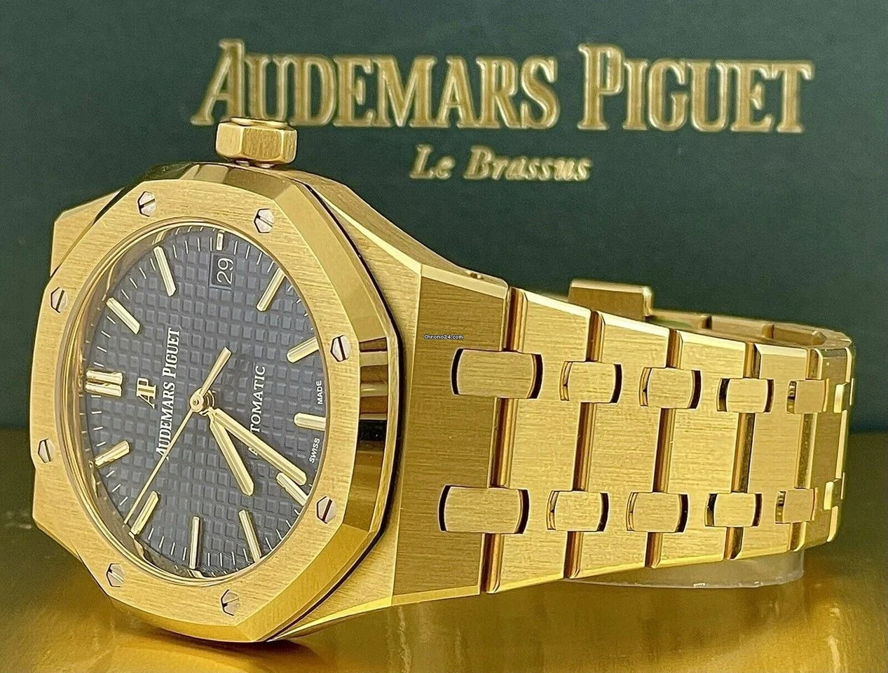 Aude mars Piguet Royal Oak Self-winding Extra-Thin In A Luscious New Plum Tone Dial New Arrival For Man With Black Crocodile Dial With Gold Strap Design Watch