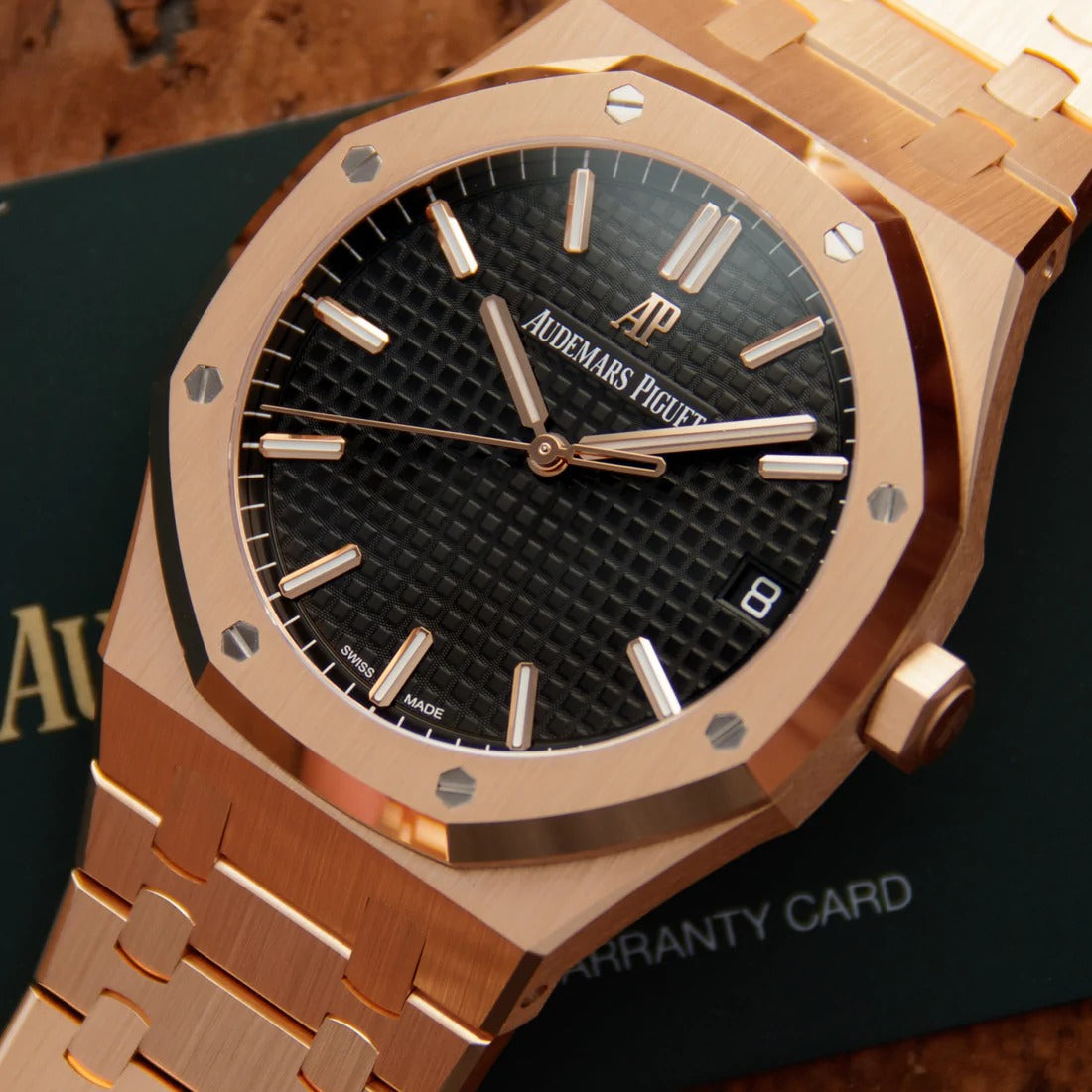 Aude mars Piguet Royal Oak Self-winding Extra-Thin In A Luscious New Plum Tone Dial New Arrival For Man With Black Crocodile Dial With Rose Gold Strap Design Watch AP-155000OR