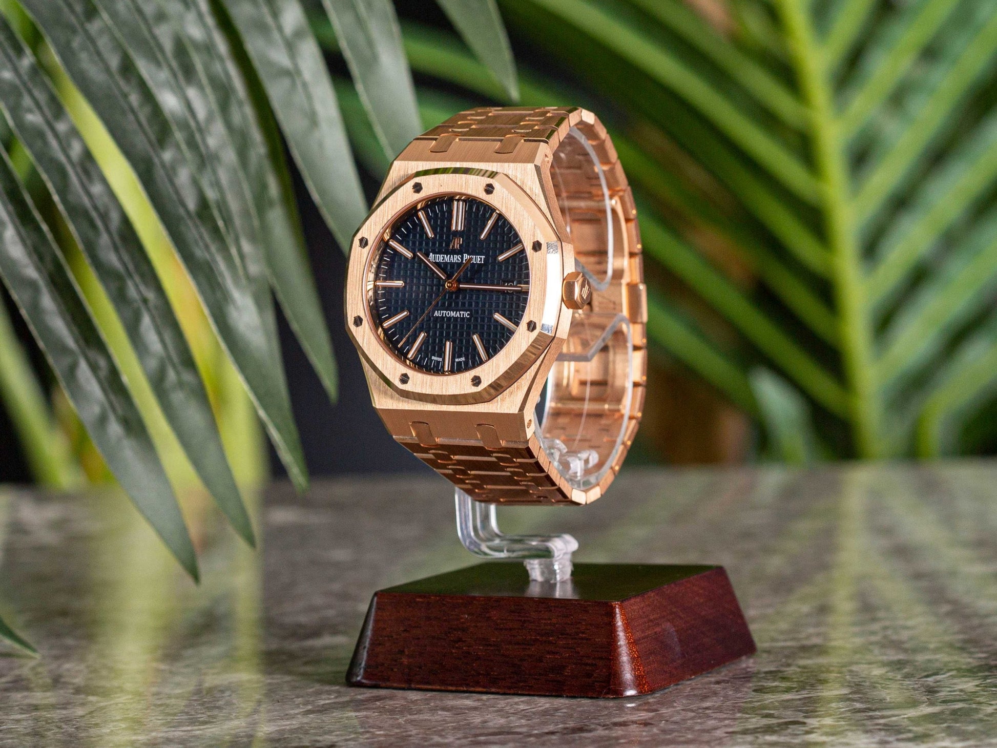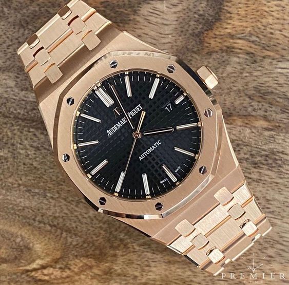 Aude mars Piguet Royal Oak Self-winding Extra-Thin In A Luscious New Plum Tone Dial New Arrival For Man With Black Crocodile Dial With Rose Gold Strap Design Watch