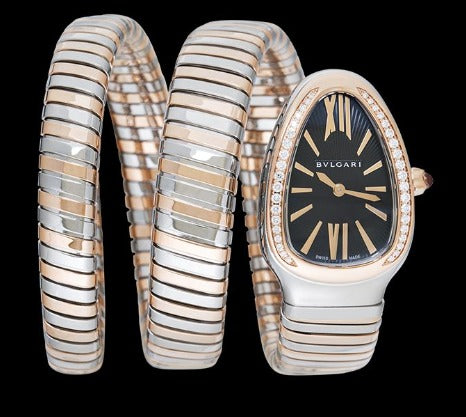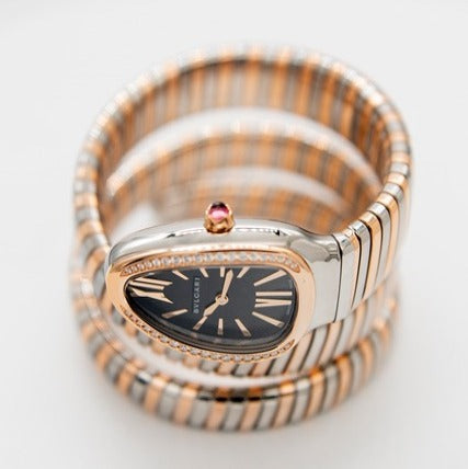 Golden And Silver Multicolor Color Metal Case & Strap Watch With Black Opaline Dial