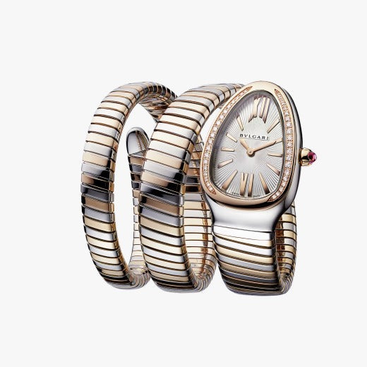Serpenti Tubogas Analog Watch With Multicolor Color Stainless Steel Case & Strap Watch With White Opaline Dial Designer Bracelet Strap Double Spiral Watch BV-103149