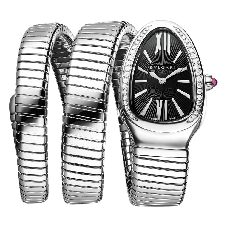Analog Watch With Silver Color Stainless Steel Case & Strap Watch With Black Gilter Opaline Dial