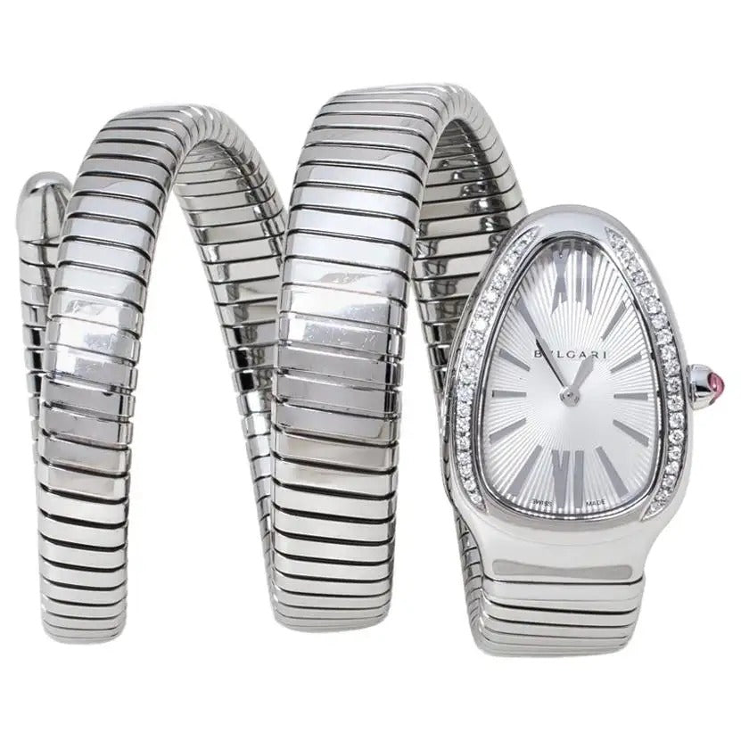 Serpenti Tubogas Analog Watch With Silver Color Stainless Steel Case & Strap Watch With White Opaline Dial Designer Bracelet Strap Double Spiral Watch For Girl Or Woman-Best Gift Date Watch- BV-101910