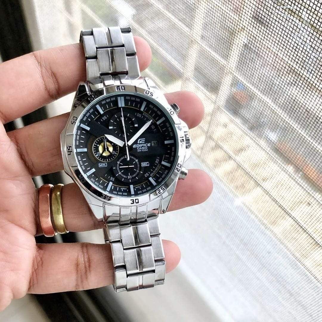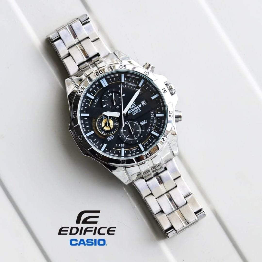 Casio Edifice Chronograph Black Dial Silver Strap Men's Watch-Best Gift EFR-556D-1AVUEF