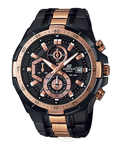 Casio Edifice Men's Black Gold Copper Tachymeter Chronograph Watch EF 539BKG