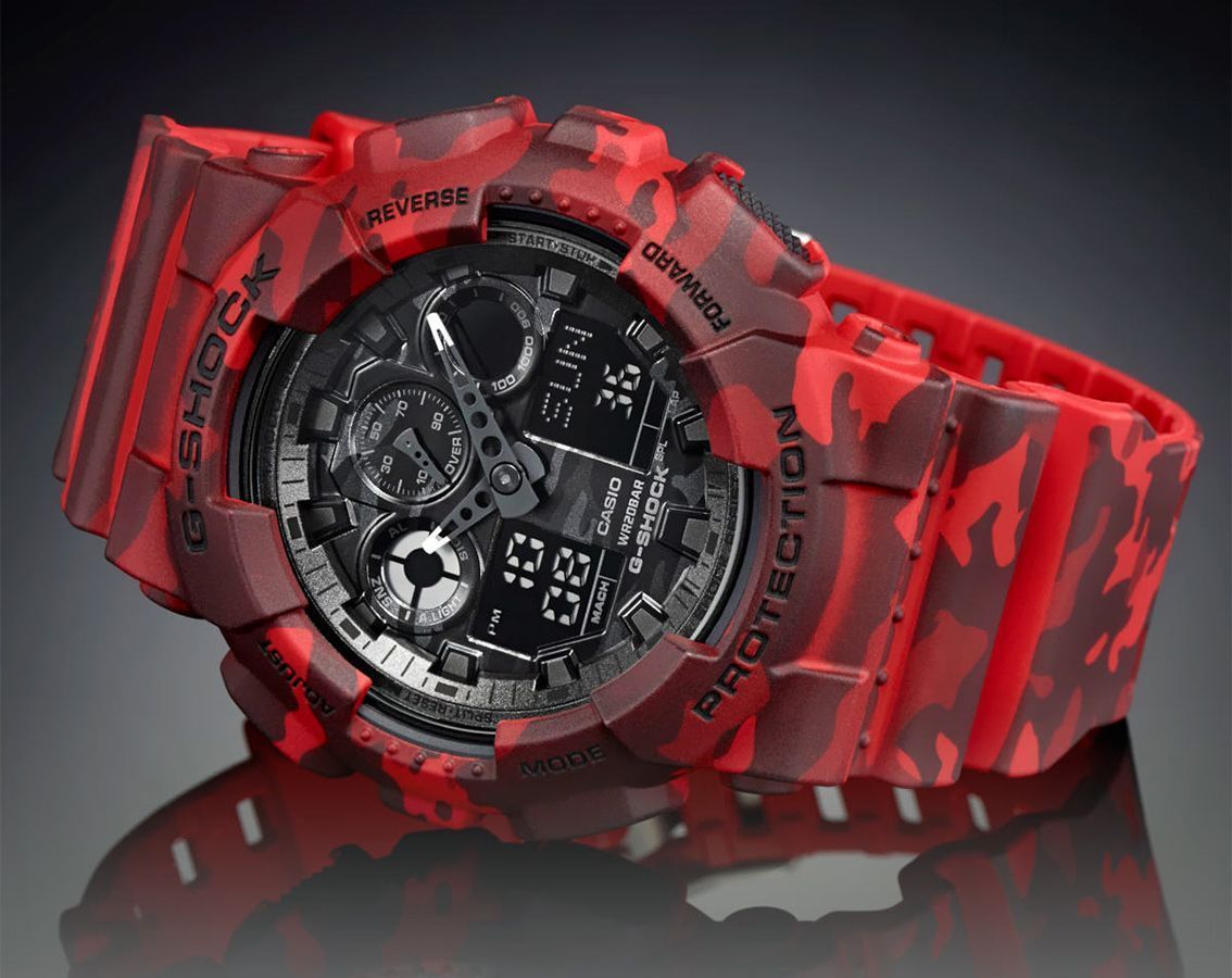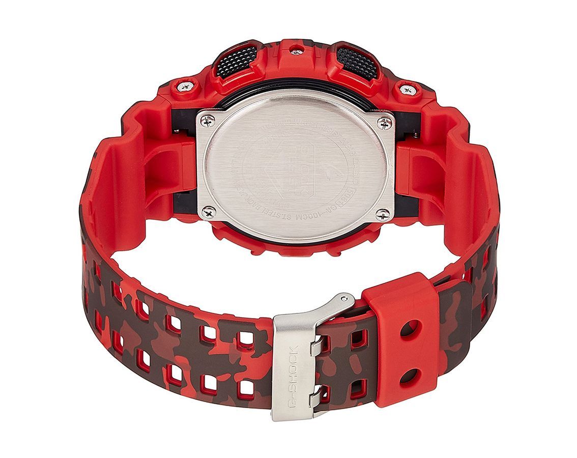 Casio G-Shock Analog Digital Black Army Dial Resin Red Army Strap Gents Wrist Watch-Best Gift GA-100CM-4ADR