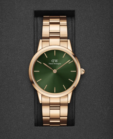 Daniel Wellington Analog Stainless Steel Strap Green Color Dial Watch With Rose Gold Case And Strap For Men's Watch DW-1202 Dial - Best Watch for Casual Use