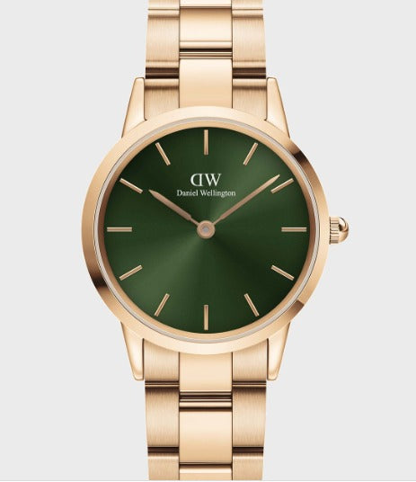 Daniel Wellington Analog Stainless Steel Strap Green Color Dial Watch With Rose Gold Case And Strap For Women's Watch DW-1201 Dial - Best Watch for Casual Use