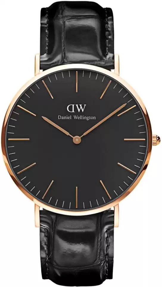 Daniel Wellington Analog Watch Leather Strap White Black Dial Watch With Gold Case And Strap For Men's Watch DW00100129 Dial - Best Watch for Casual Use