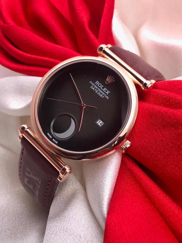 RLX Daytona Half Moon Dial Swiss Leather Men's Watch For Man Black Color Dial Maroon Color strap Date Gift Watch - RLX-14