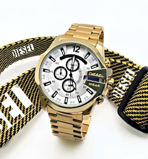 Diesel Mega Chief Chronograph Full Gold White Dial Men's Watch For Man DZ-4342 Gift