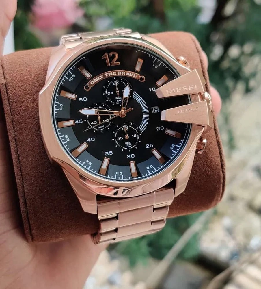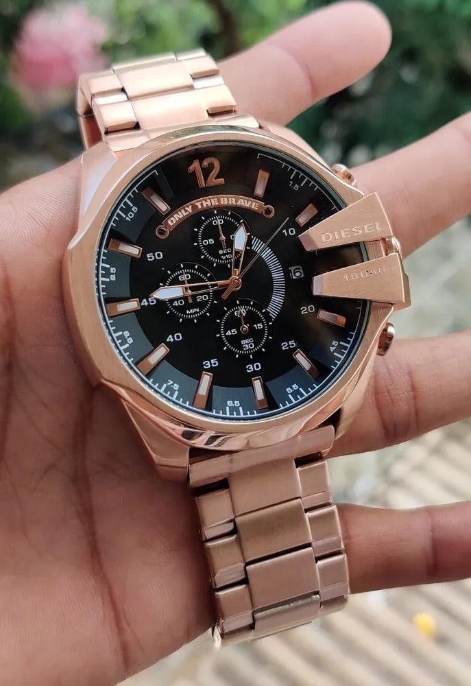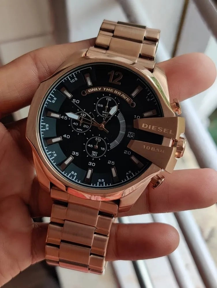 Diesel Mega Chief Chronograph Full Rose Gold Black Dial Men's Watch For Man DZ-10065 Gift