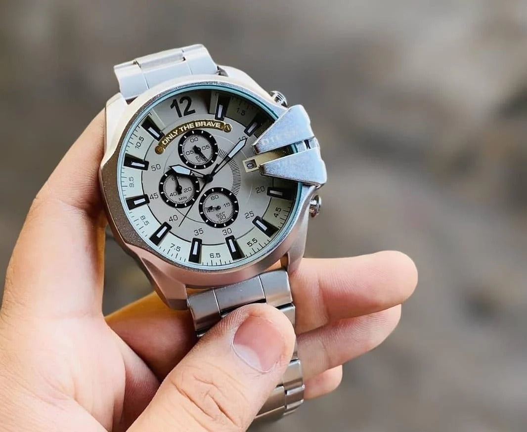 Diesel Mega Chief Chronograph Full Silver Stainless Steel Grey Dial Men's Watch For Man DZ-100986 Gift