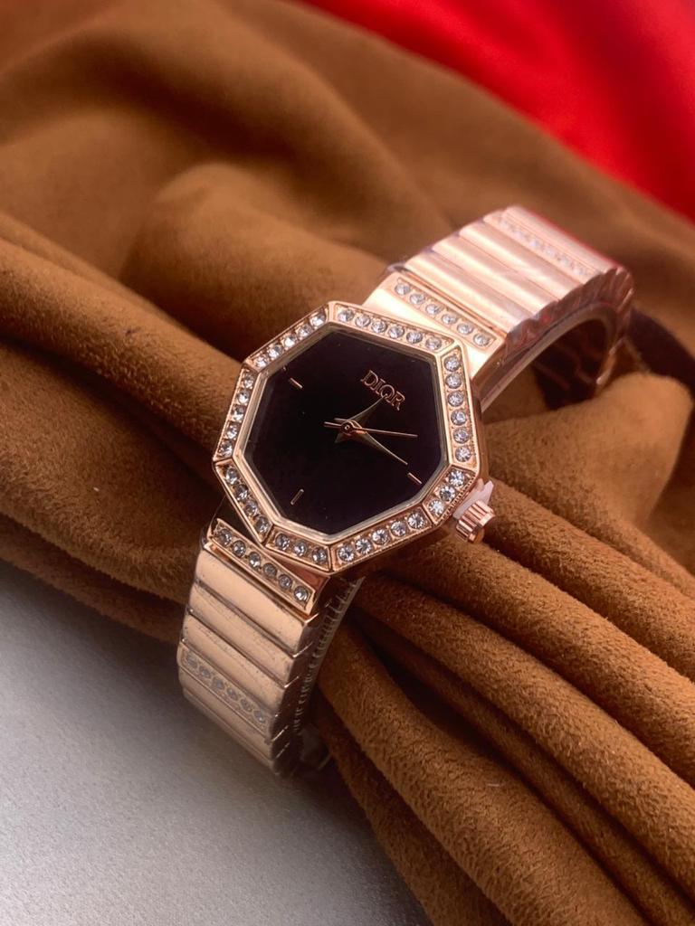 Designer Quartz Swiss made DR-215 Watch With Black Dial Rose Gold Cover Gold Strap And Braclet Design Watch for Women and Girls Vintage Collection- Best Gift