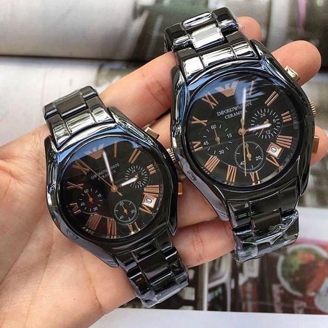 Emporio Armani Ceramic Chronograph Black Gold Dial Couple Watch For Couple-Best Gift