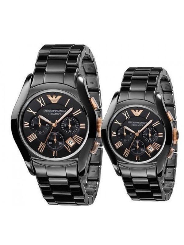 Emporio Armani Ceramic Chronograph Black Gold Dial Couple Watch For Couple-Best Gift AR1410+AR1411