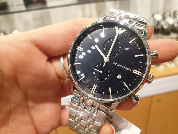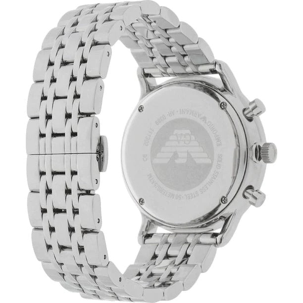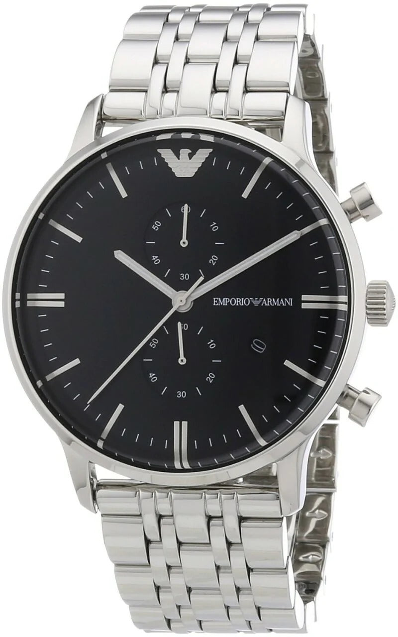 Emporio Armani Chronograph Silver and Black tone Strap Date men's Watch For Men With Black Dial AR-0389 Gift Best watch
