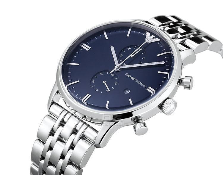 Emporio Armani Chronograph Silver and Blue tone Strap Date men's Watch For Men With Blue Dial AR1648 Gift Best watch