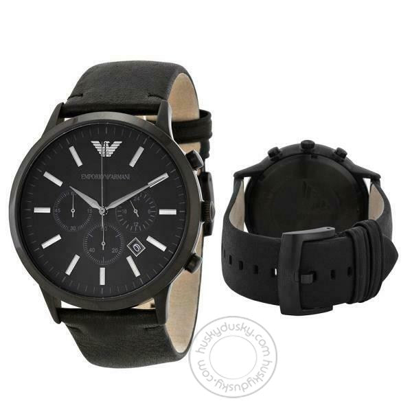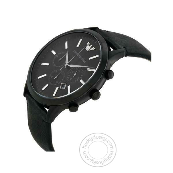 Emporio Armani Sportivo AR2461 Wrist Watch for Men Black Leather Men's Watchfor Gift