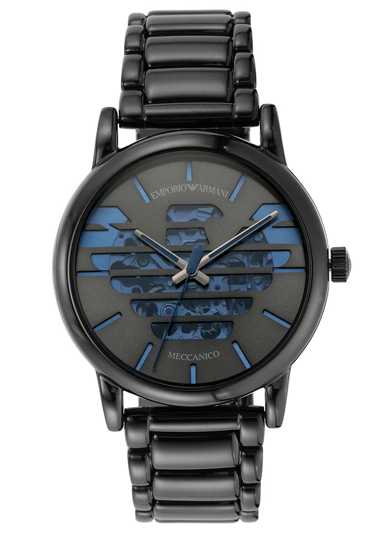 Emporio Armani Watches AR60029 Meccanico Luigi Black Stainless Steel Black Dial Mens Watch