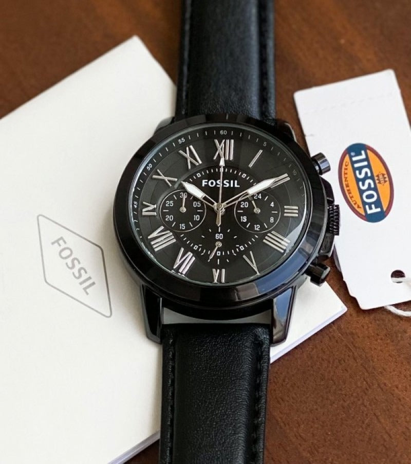 Fossil Chronograph Black Dial Leather Men's Watch - FS-5147
