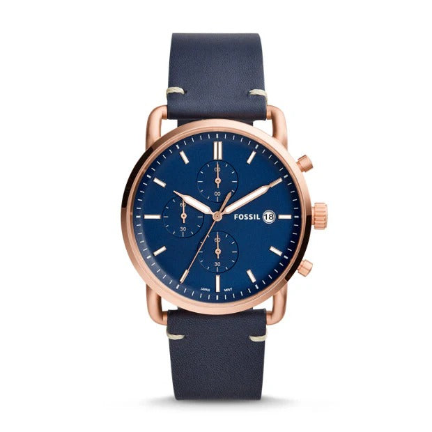 Fossil Chronograph Blue Dial with Blue Leather Strap Watch for Men FS-5404
