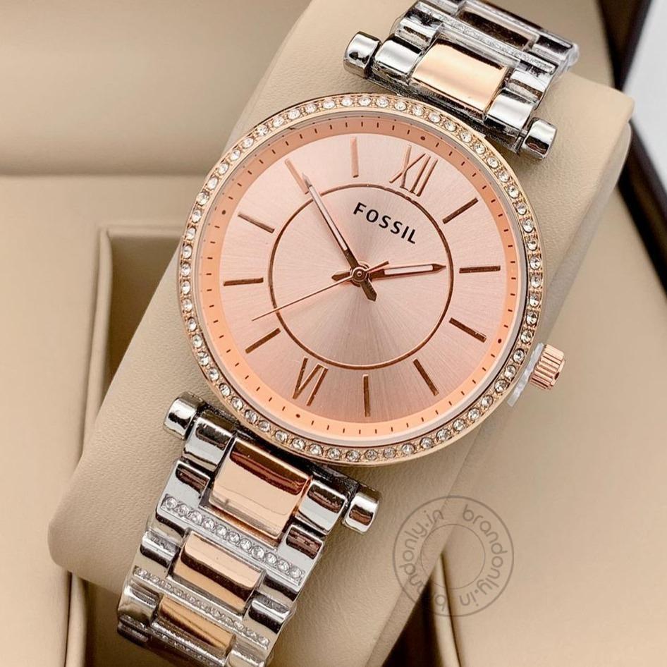 Multi Color Metal Diamond Case & Strap Watch For Women's Es8040 Design Rose Gold Dial For Girl Or Woman Best Gift Date Watch