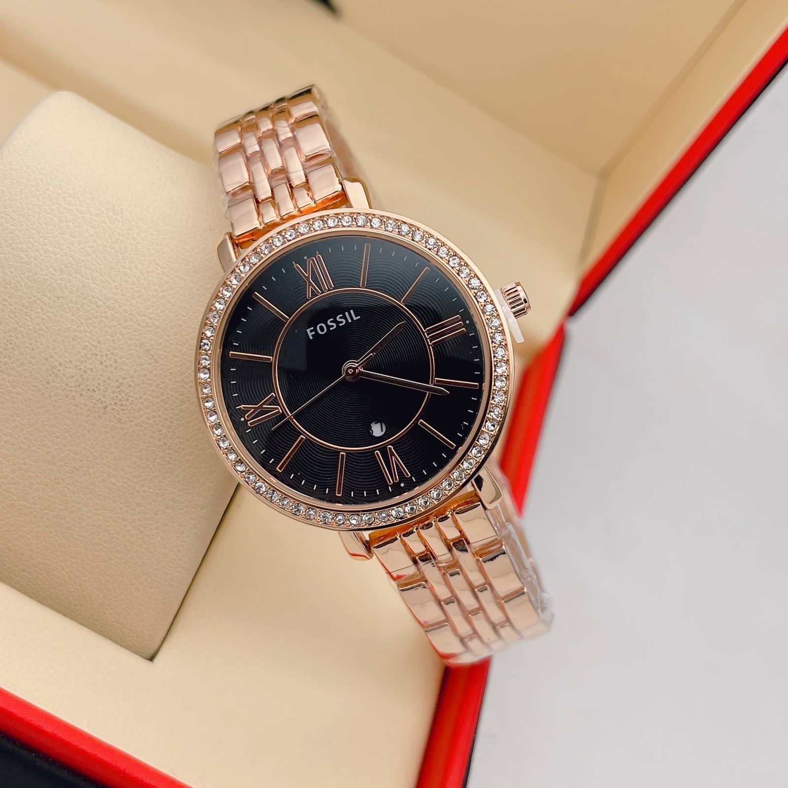 Rose Gold Metal Diamond Case&Strap Watch For Women's Es3548 Design For Girl Or Woman Black Dial Best Gift Date Watch