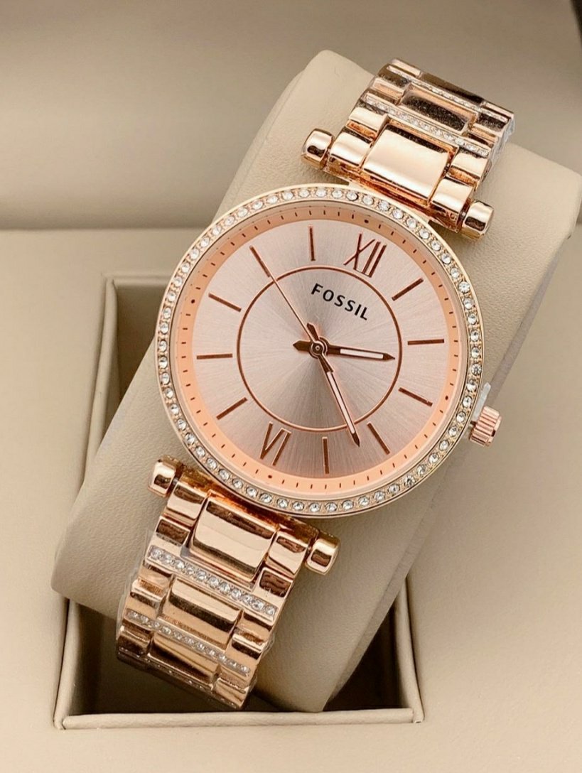 Rose Gold Metal Diamond Case&Strap Watch For Women's Es8030 Design Rose Gold Dial For Girl Or Woman Best Gift Date Watch