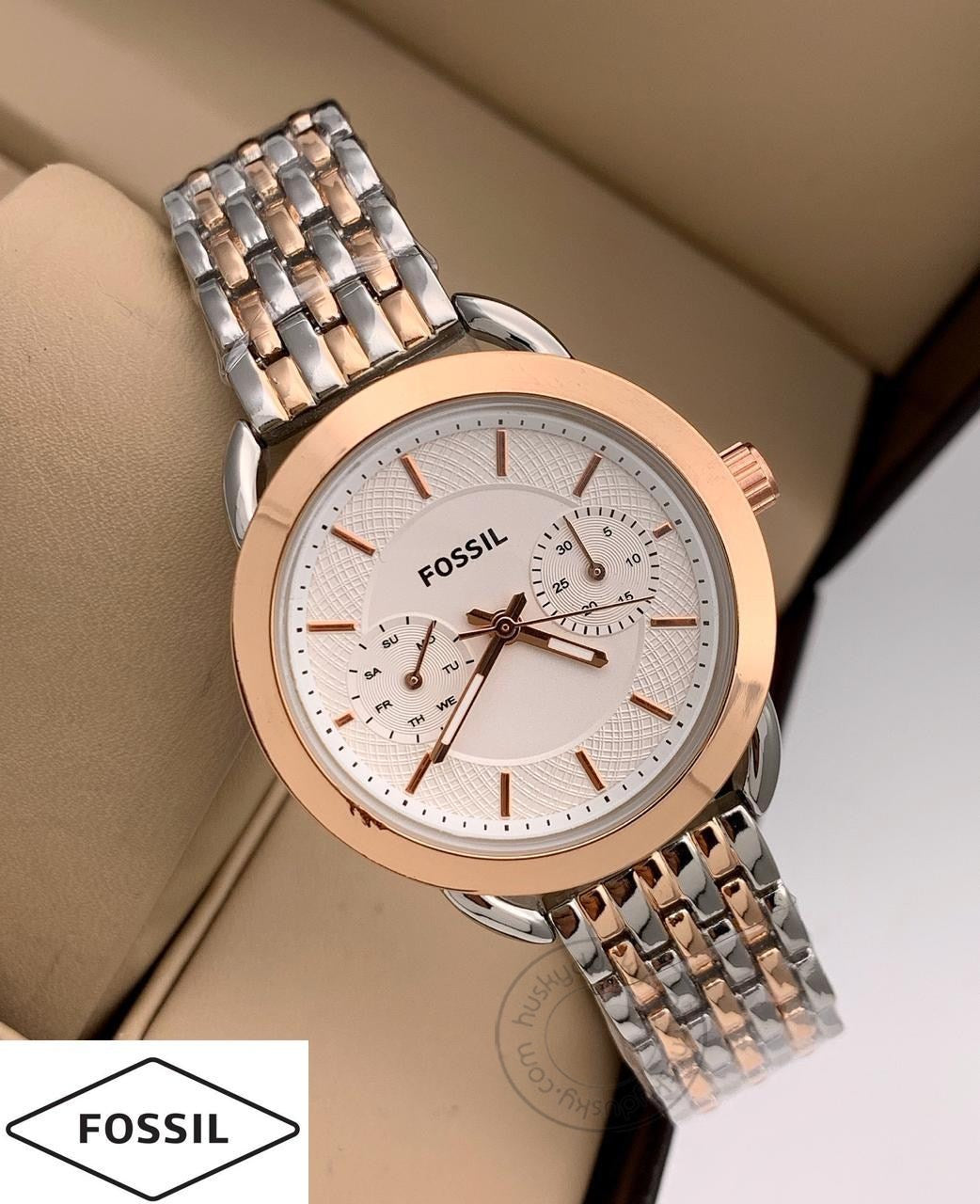 Rose Gold Silver Women's Watch for Girl or Woman ES-240 Two Tone Day Date - Best Gift For Women
