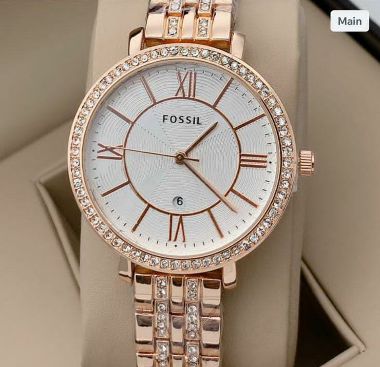 Rose Gold Strap Metal Diamond Strap Watch For Women's ES-5776 Design White Dial For Girl Or Woman Best Gift Date Watch