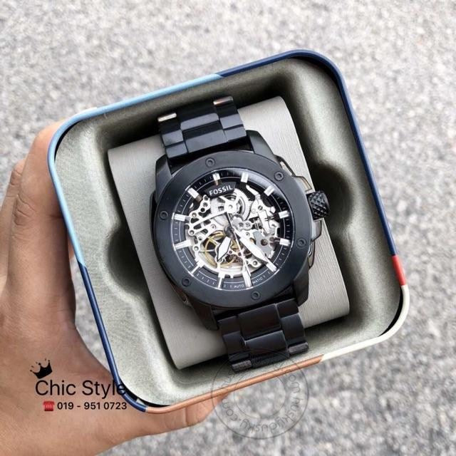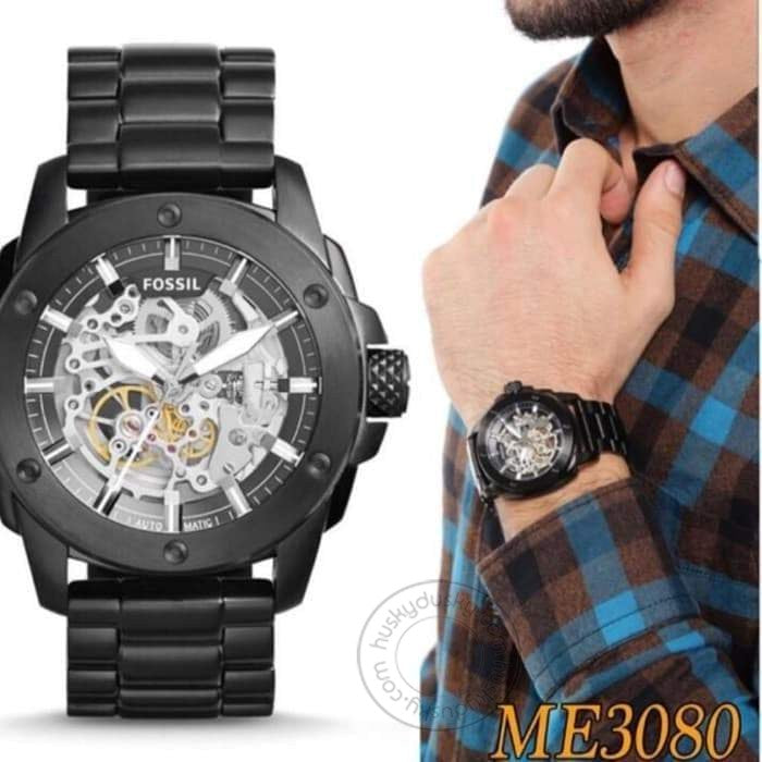 Fossil Skeleton Black Chronograph Automatic Men's Watch ME3080 Formal Casual Metal Watch for Man