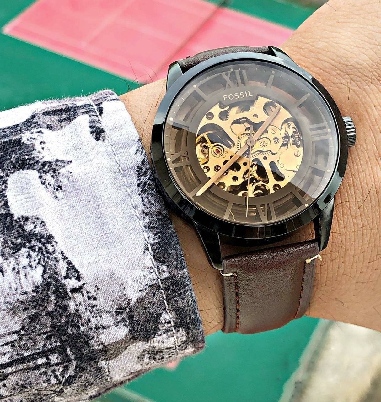 Fossil Skeleton Black Chronograph Automatic Mens Watch ME3098 Formal Casual leather Watch for Man