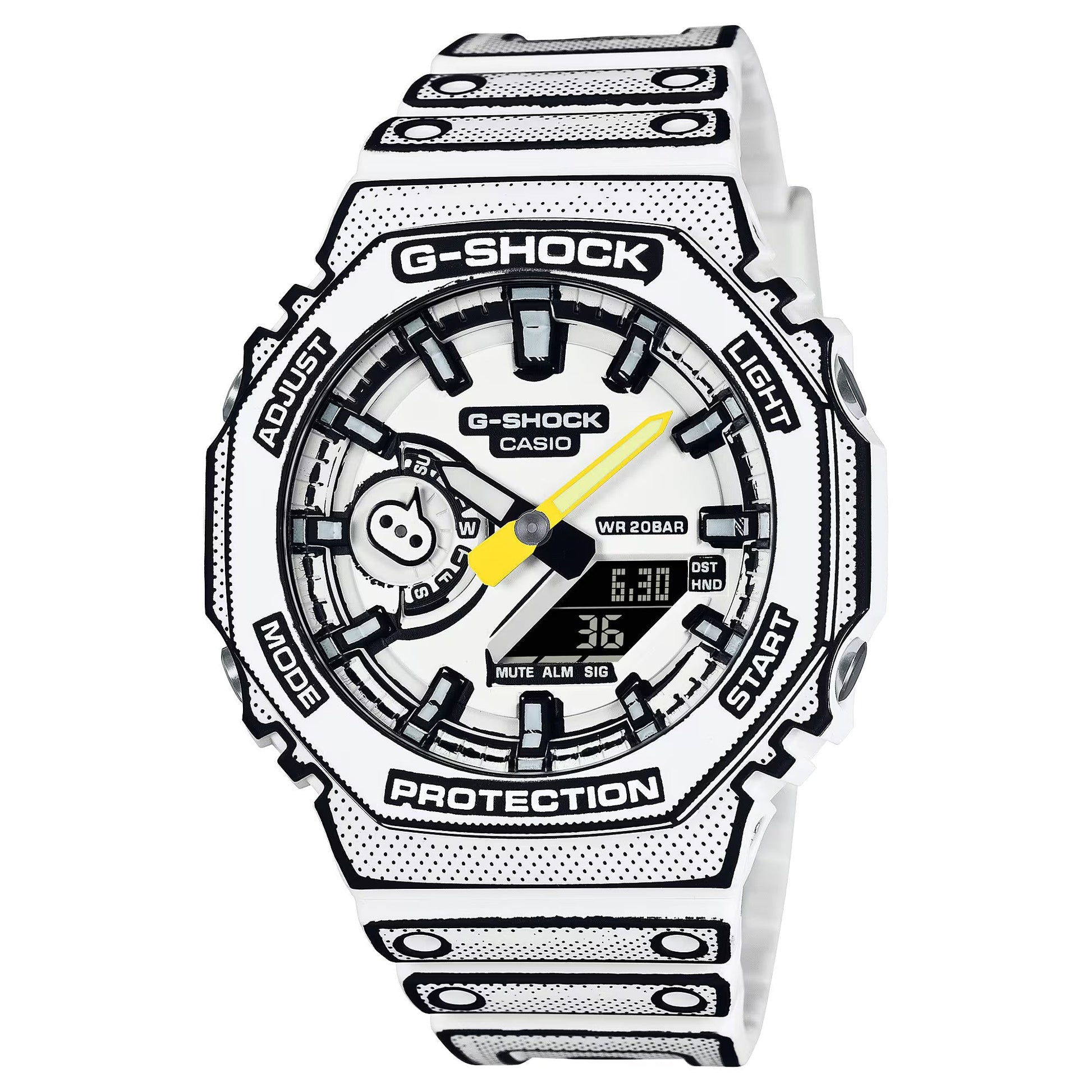 The GA-2100 with its iconic octagonal bezel features a band, bezel and dial printed in the screentone technique used by manga artists to apply texture and shading, adding depth to two-dimensional drawings.