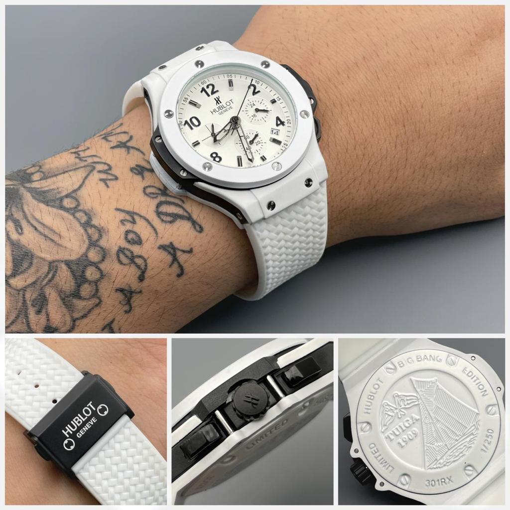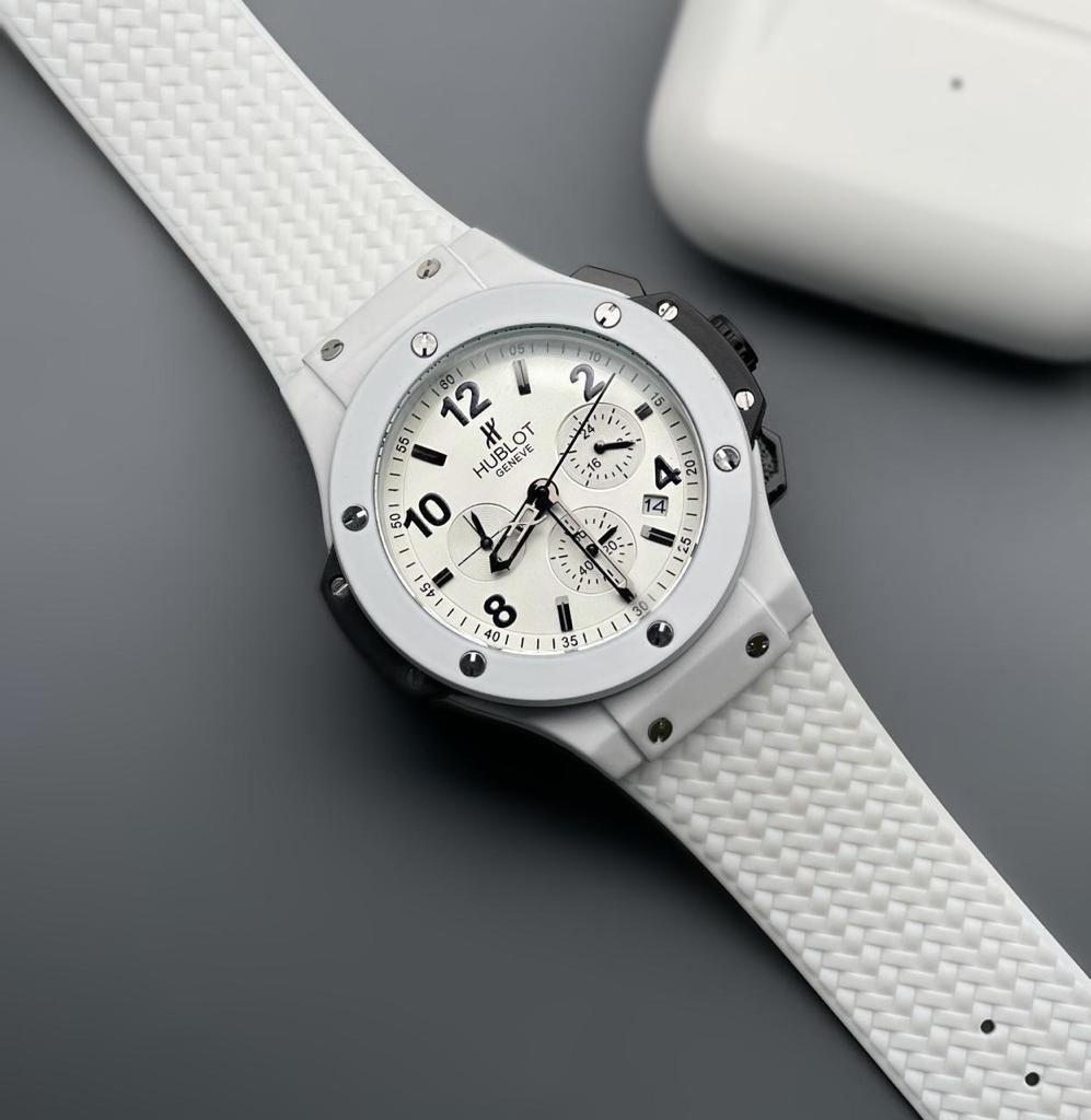 Hublot Bigbang Classic White Strap Watch 45mm Round Big Bang 5, Formal Watch For Men's HB-W-05