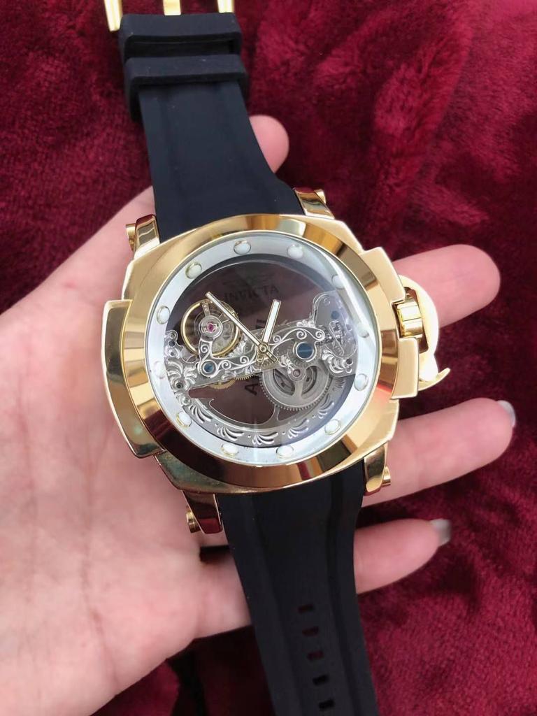 INVICTA - IAS02 Forces back Bolt Zeus Tourbillon Gold Plated silicone belt Men's Automatic mechanical Watches Best Gift For Gentlemen