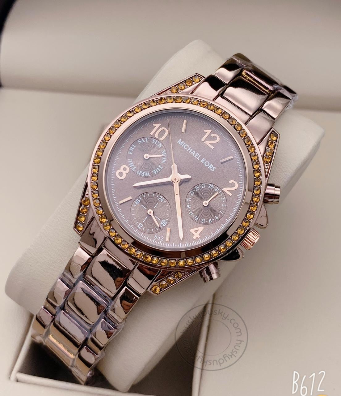 Peach Starp Women's Chronograph MK-3585 Watch for Girl or Woman Peach Dial Diamond Case Best Gift For Women
