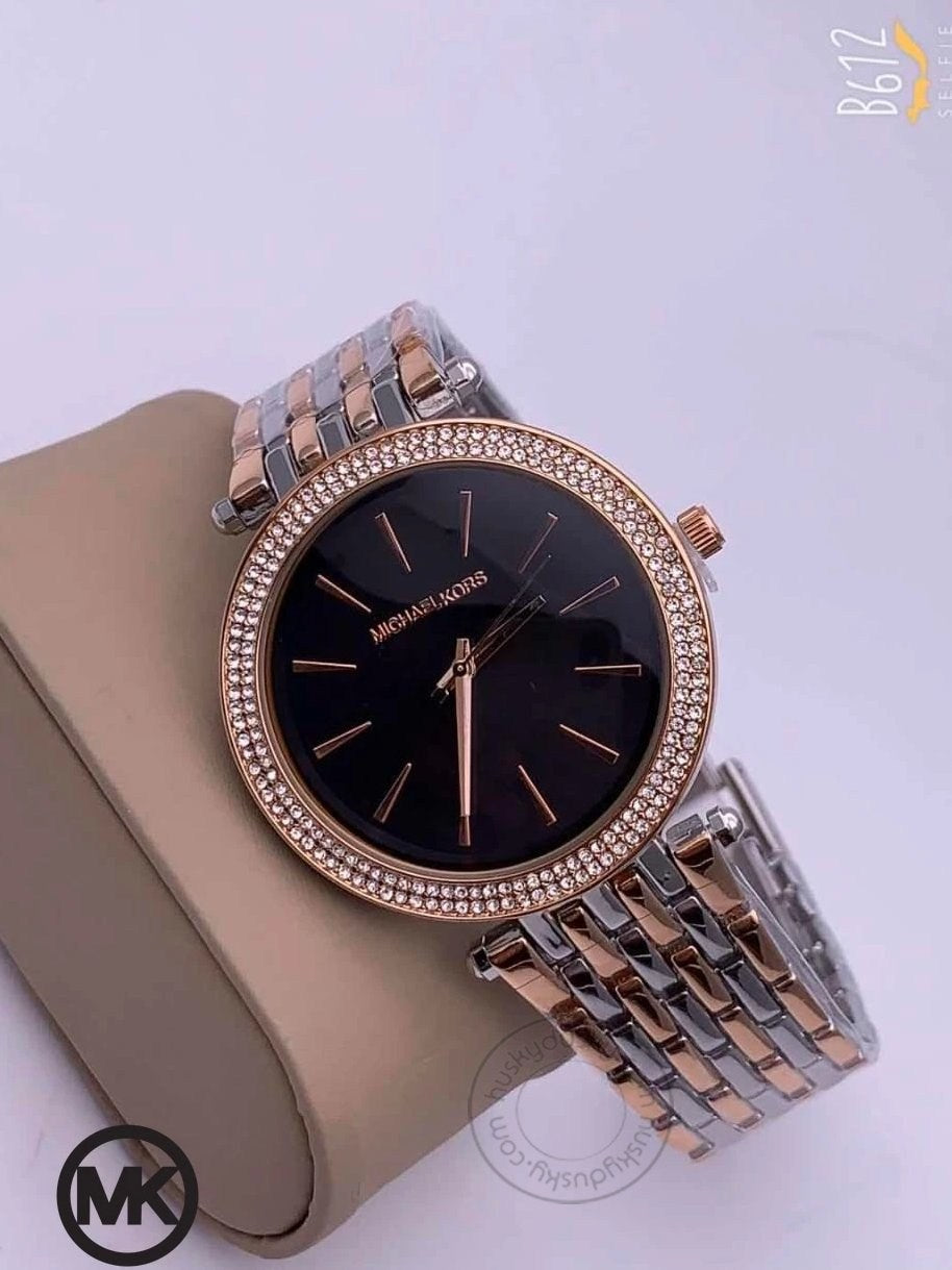 Rose Gold Diamond Strap Women's MK-21 Watch For Woman Or Girl Black Dial Gift Watch