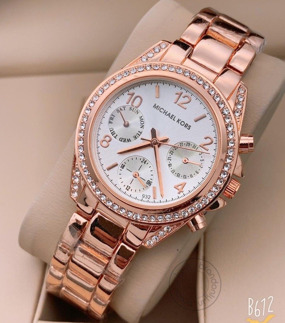Rose Gold Starp Women's Chronograph Mk-3596 Watch For Girl Or Woman White Dial Diamond Case Best Gift For Women
