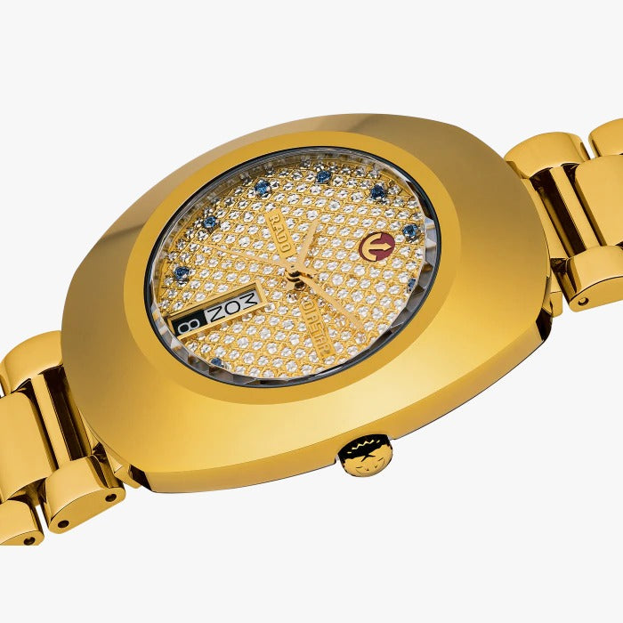 Rado Round Diastar R124133245 Automatic Analog Gold Strap Date Men's Watch With White Dial Classic Formal Party Wear for Men's