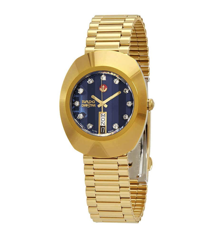 Rado Round Diastar R12413533 Automatic Analog Gold Date Men's Watch With Black Dial Classic Formal Party Wear for Men's