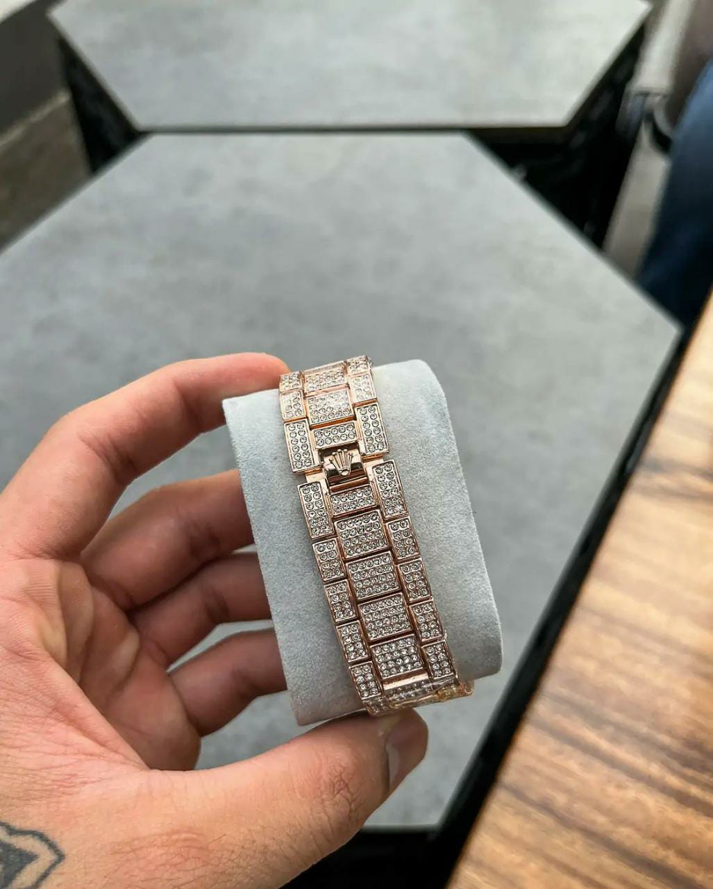 RLX Diamond Set - Stainless Steel Watch With Arabic Rosegold Dial Watch For Men's And Women's -Best For Stylist Look- Rlx-Arabic-Rosegold