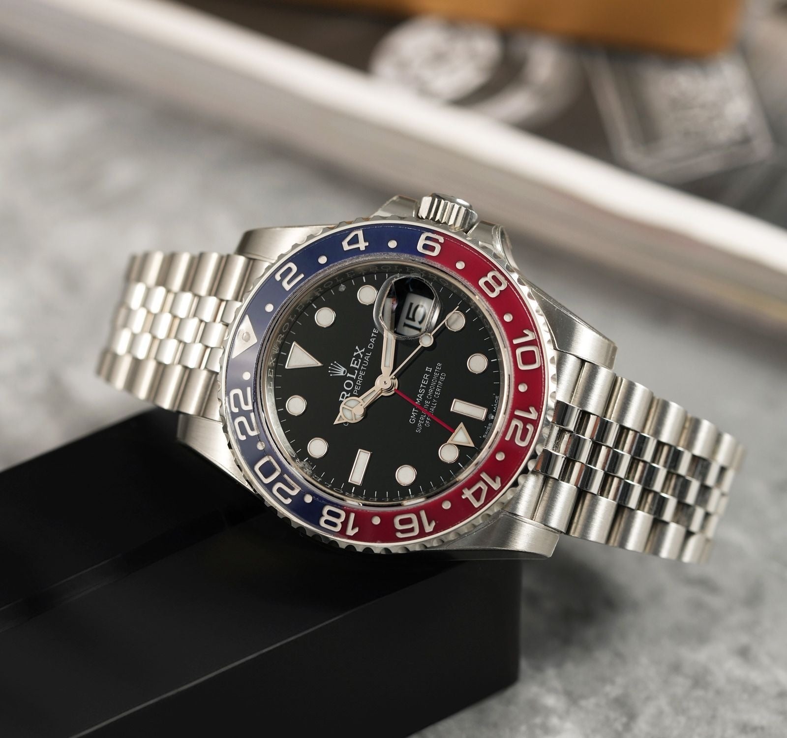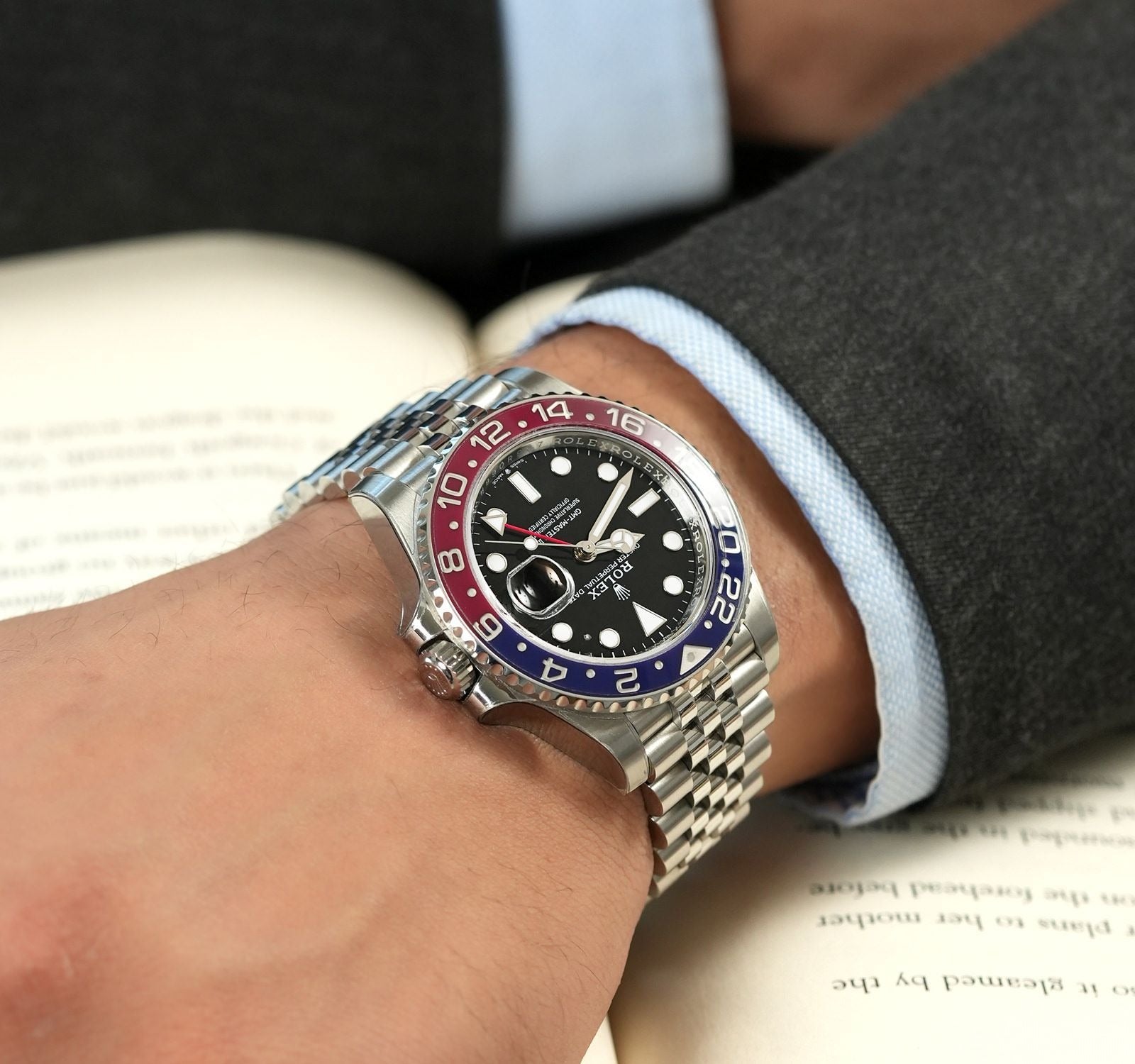 ROLEX GMT-Master II Stainless Steel Black Dial Blue Bezel Oyster silver Metal Men's Watch for Man RLX-GMT-5304
