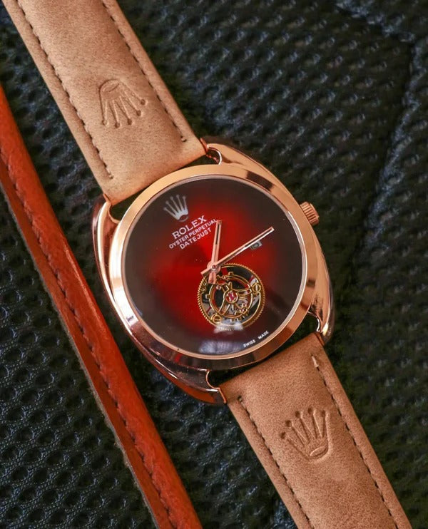 Oyster Perpetual DayTona Tan Leather Watch For Women's RLX-459 Red Dial Gold Case Railway Time Women's Watch