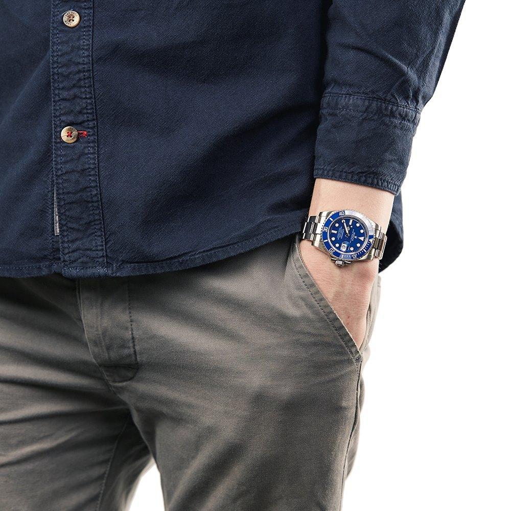 Trendy RLX Quartz Silver Blue Dial Metal Men's Watch for Man RLX-BLUE-SUB