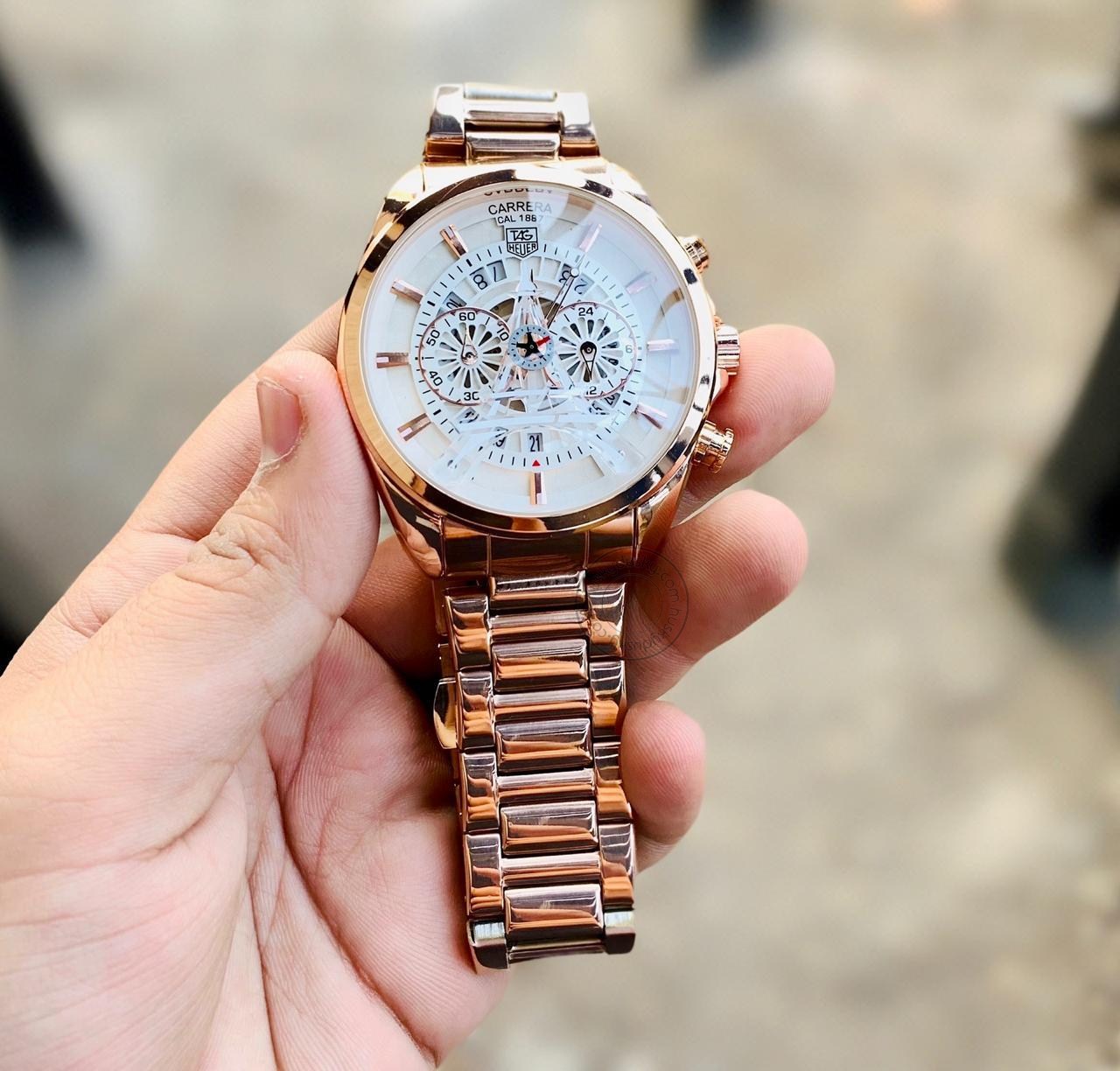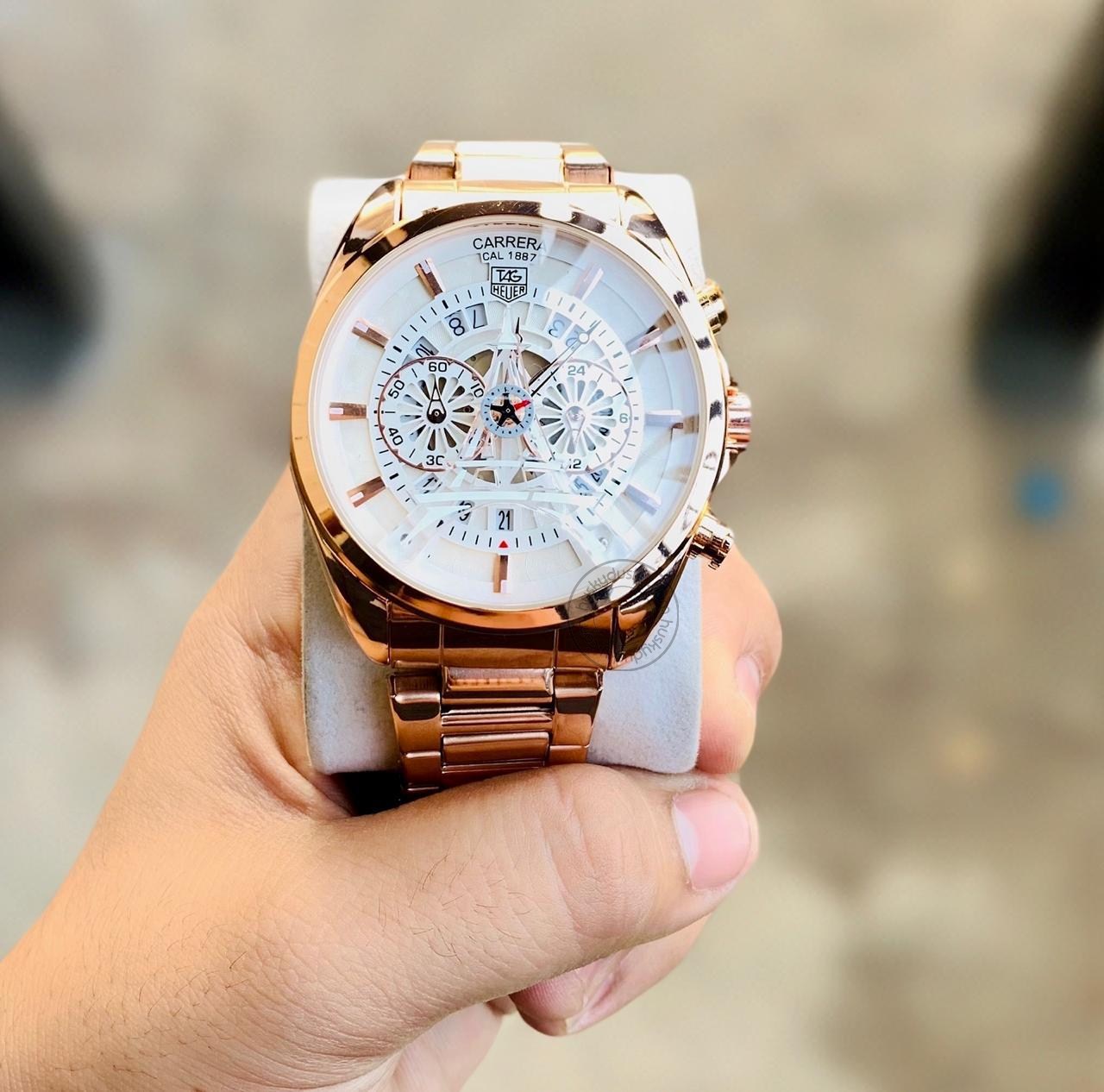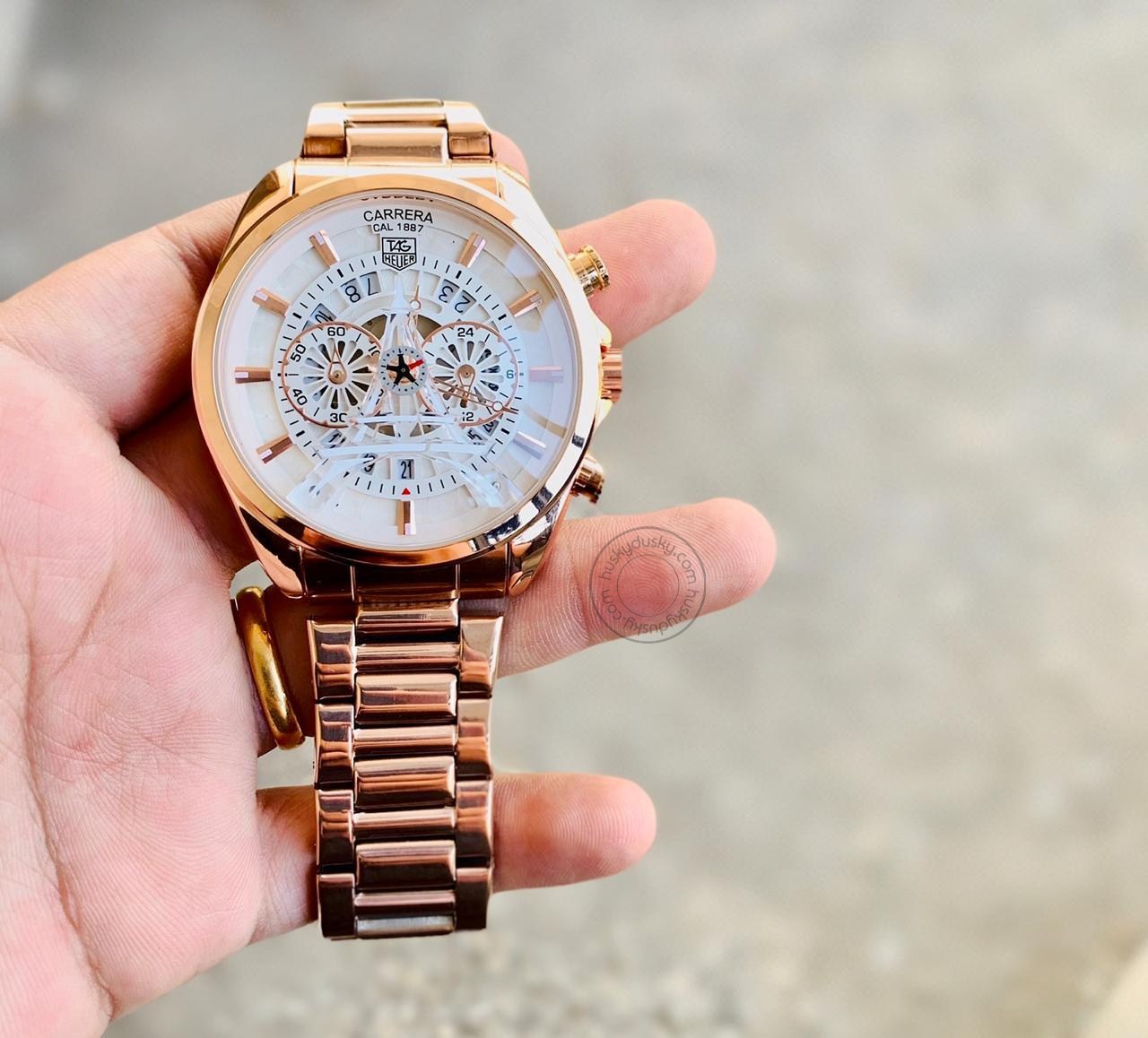 Tag Heuer Carrera Caliber Eiffel Tower Edition Car-IT-687 Rose Gold Chain Chronograph White Dial Stainless Steel Men's Watch For Man - Gift