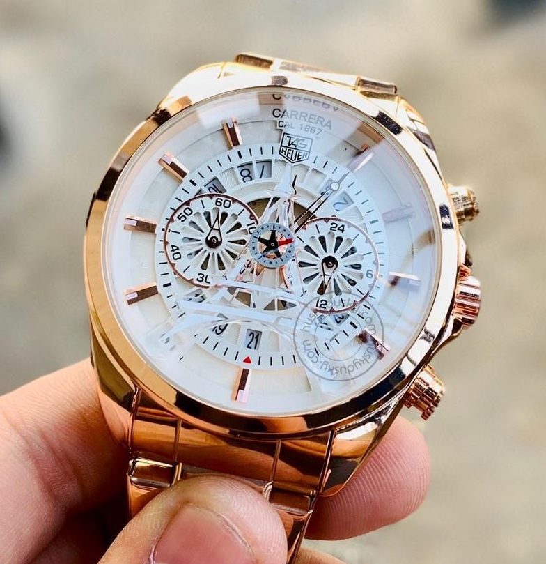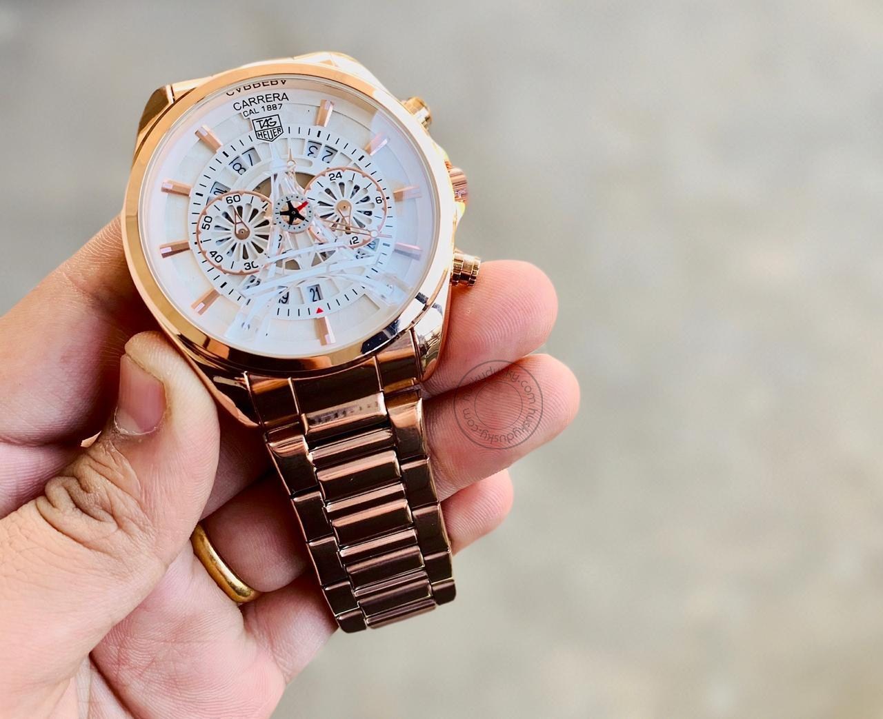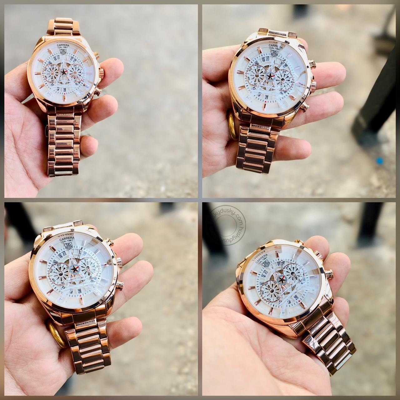 Tag Heuer Carrera Caliber Eiffel Tower Edition Car-IT-687 Rose Gold Chain Chronograph White Dial Stainless Steel Men's Watch For Man - Gift