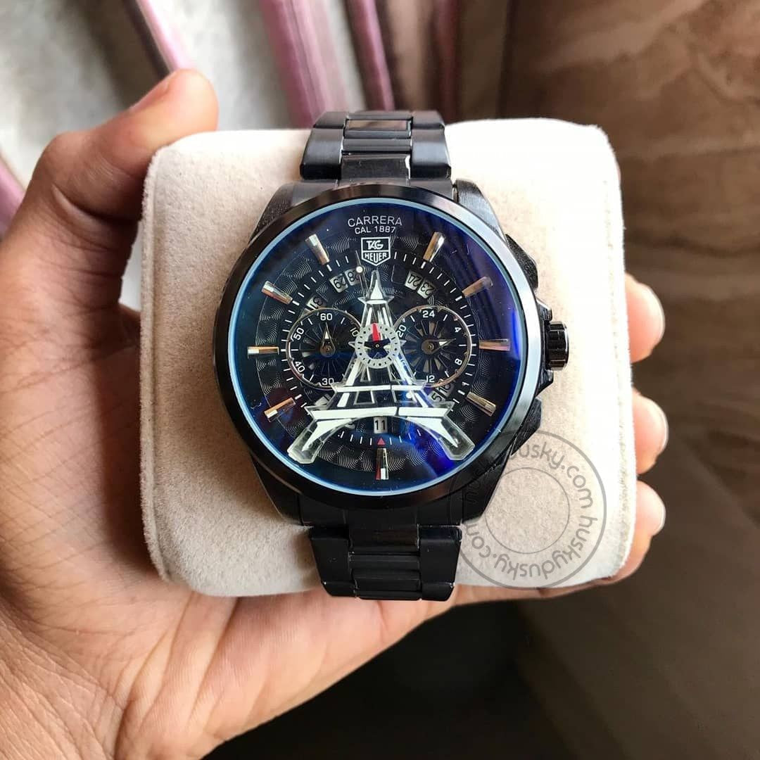 Tag Heuer CARRERA Eiffel Tower edition CAR-IT-01 Black chain Chronograph Black Dial Stainless Steel Men's Watch for Man - Gift