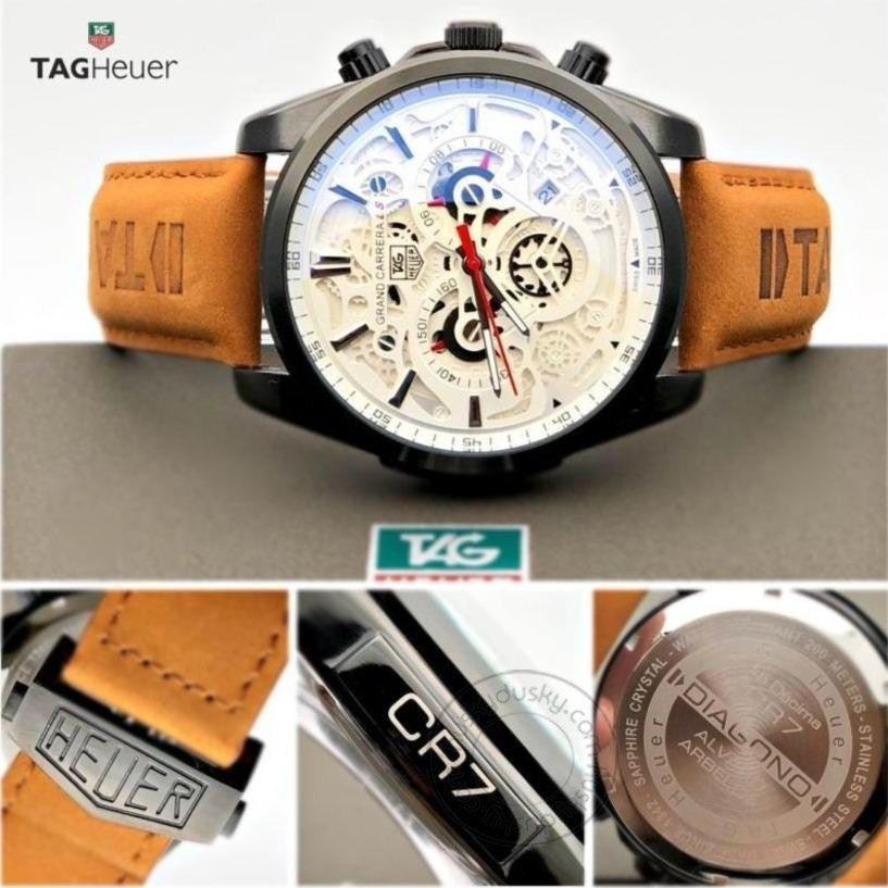 Tag Heuer CR7 Diagno Brown Tan Chronograph Multi Dial Leather Mens CAR2110-TAN Watch for Man - Gift