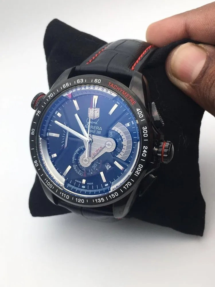 Tagheuer GRAND CARRERA Caliber 36 Racing Edition Quartz Watch Black Chronograph and Leather Black Strap Dated Watch For Men's -TAG-IT-7878_Men's Wristwatch